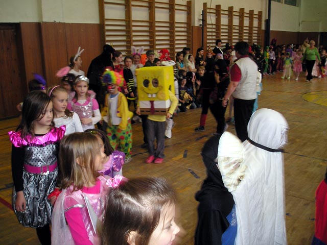telocvične. Žiaci prvého stupňa si obliekli rôzne nevšedné kostými,
